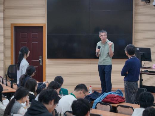 在提问环节,阮教授与在场师生积极进行充分的交流,他分享了自己在学习过程遇到的困难。阮教授寄语青年学生,在科学研究和人生道路中,“生活不是眼前的苟且,还有诗和远方”,要将人生决策置于更加宽阔的视野和更加充分的人生体验之下。