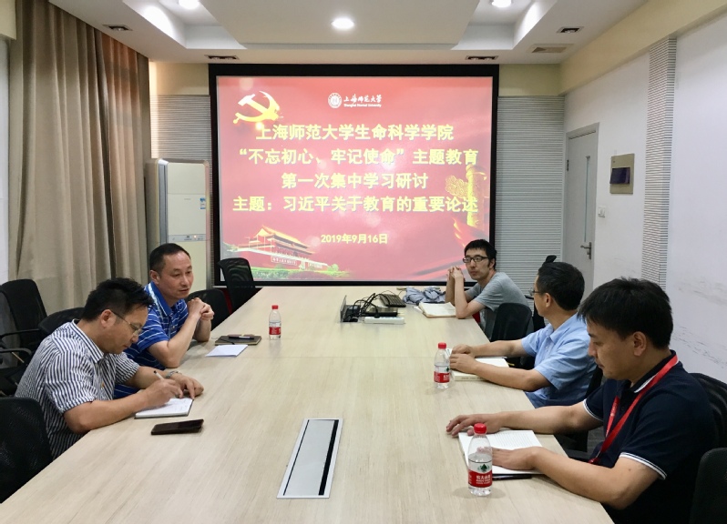 2019年9月16日下午16:15,生命科学学院领导班子全体成员在一教328召开“不忘初心、牢记使命”第一次专题学习研讨会议,学习主题为学习习近平总书记关于教育工作的重要论述。专题学习会议由学院党委书记康文同志主持,学院党委书记康文同志和学院院长杨仲南同志做重点发言,校主题教育指导组和学院班子全体成员出席会议。