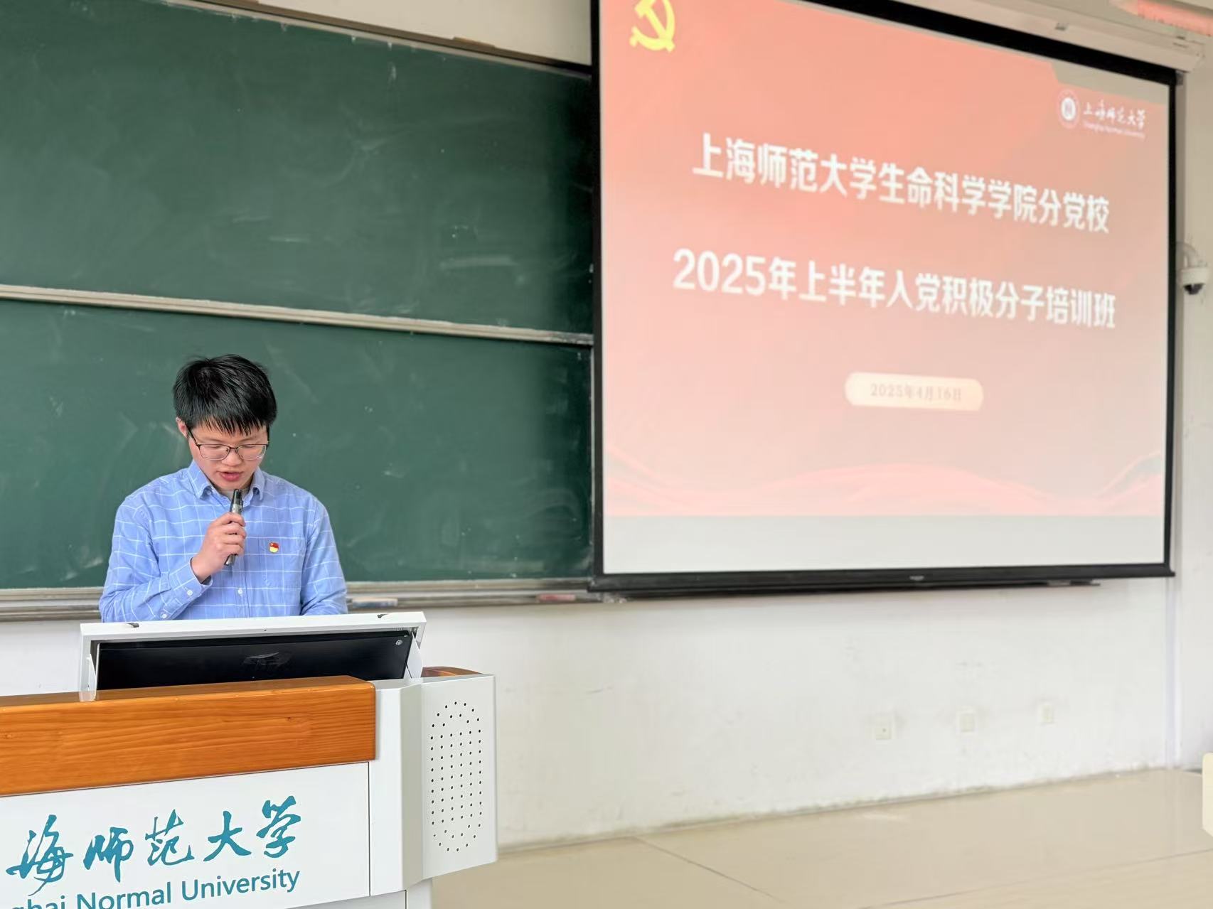 为进一步加强入党积极分子的理论修养和思想觉悟,明确其自身努力方向,2025年4月16日下午,生命科学学院分党校2025年上半年入党积极分子学习班在我校奉贤校区三教402开班。校关工委讲师团成员、校特邀党建组织员单冠初老师,生命科学学院曾秋烨、杨华琛老师出席本次开班仪式,活动由曾秋烨老师主持。