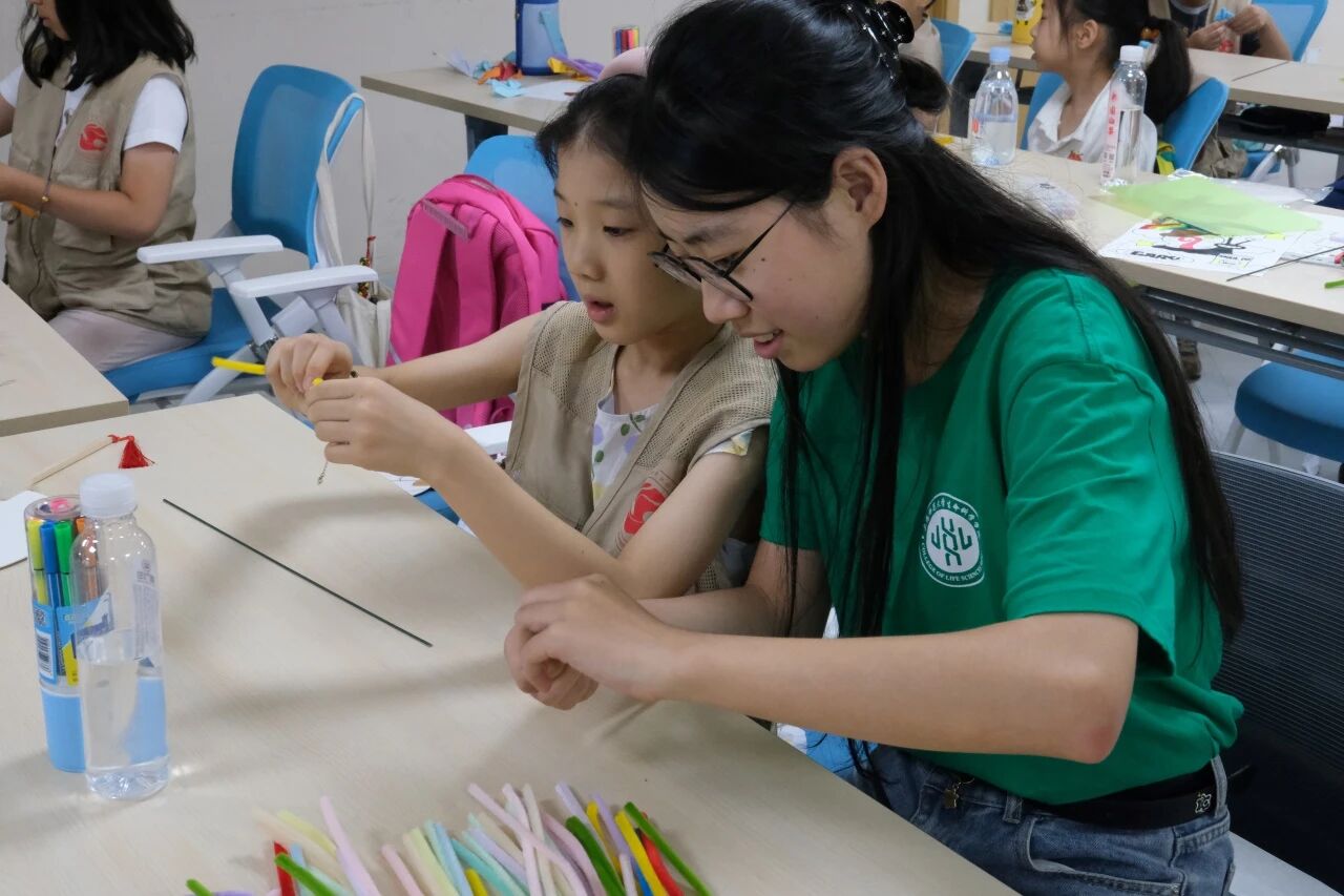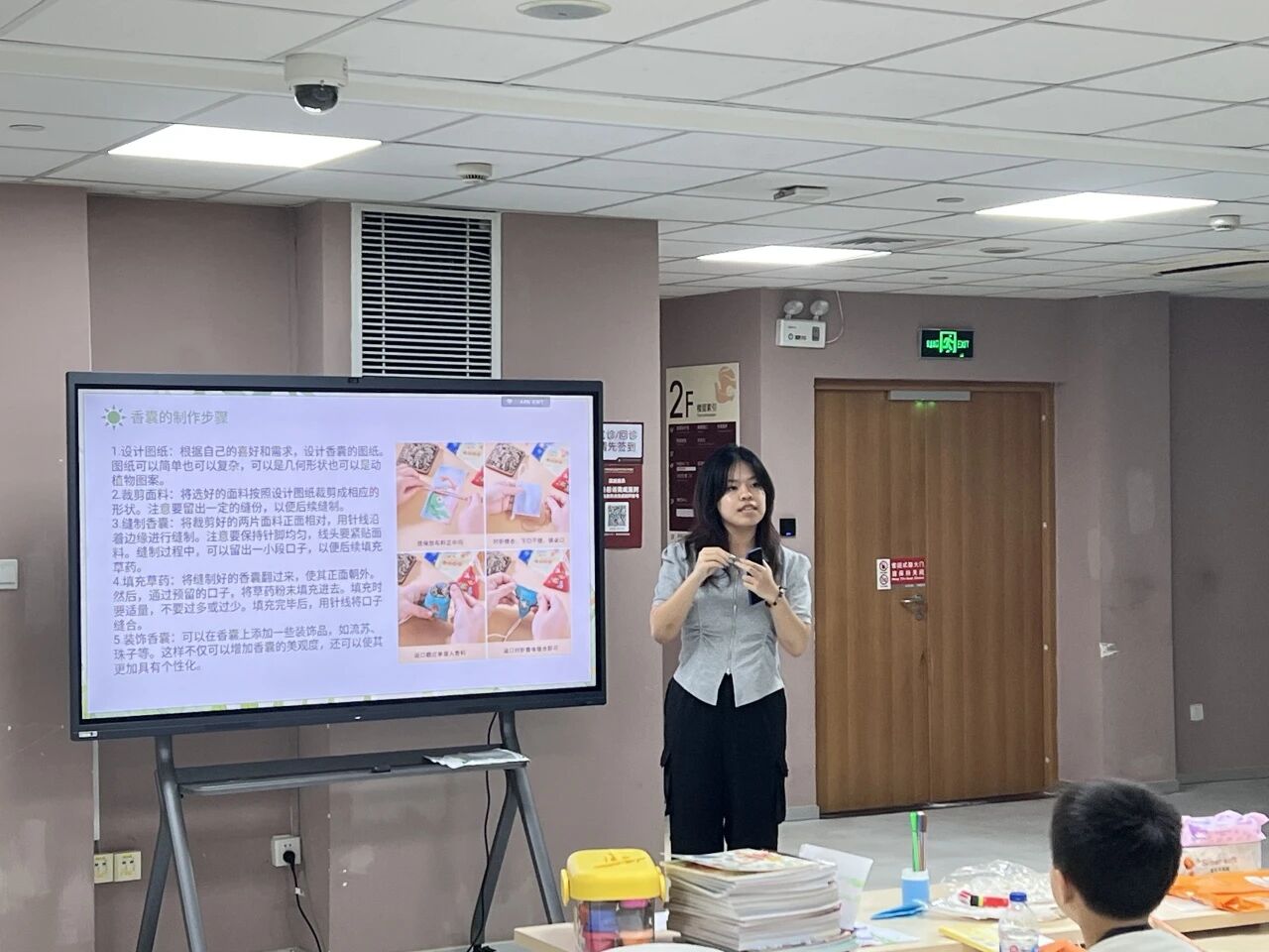 本次爱心学校充分发挥生命科学学院育人特色,依托学院学生社团优质资源,安排了丰富的特色课程、有趣的手工课程和科技启蒙课程,将科学知识和动手体验相结合,既有大白鲨、猴面包树、捕蝇草等有趣动植物知识科普学习,也有折纸、绘画等创意手工;还带领小朋友们走进“芳香的世界”,制作香囊、扭扭棒;探索“食品安全的密码”,DIY健康餐盘。