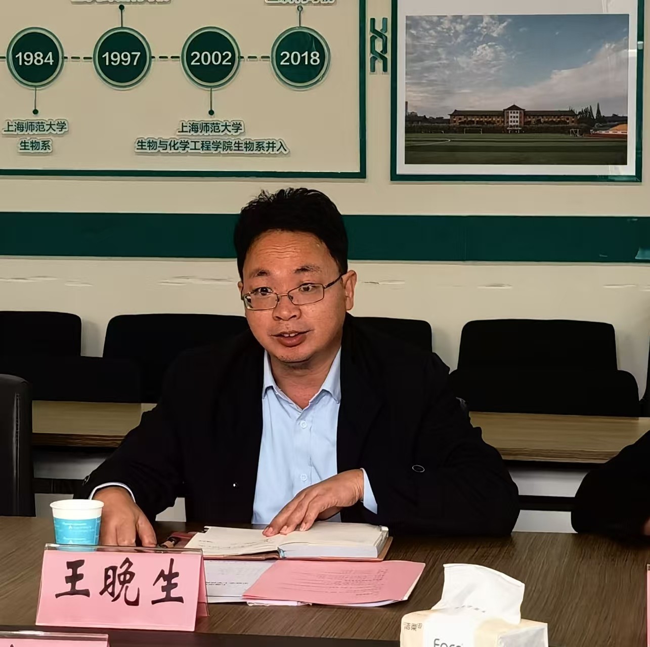 王晚生代表学校对评审专家的到来表示热烈欢迎,表示本次评审是检验生物制药专业学士学位授权的重要环节,希望专家们在培养目标、师资力量建设、课程体系配置、办学质量保障、教学质量监管方面进行把关,多提宝贵意见。