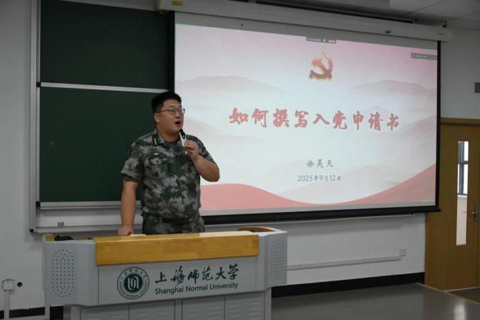 党课结束后,院团委书记、2025级本科生辅导员徐昊天介绍了党员发展的关键节点,详细讲解了入党申请书的撰写格式与要求,希望全体新生把党课所学所悟融入到后续的军训生活和大学生涯中,以军人的纪律严格要求自己,以党员的标准不断提升自己,早日成长为堪当民族复兴重任的时代新人。