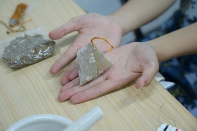 在制作环节中,同学们表现出极大的热情与认真的态度,从最初的穿针引线、布料缝合,到精心填充香料,再到最后的细致封口,每一步都是对动手能力与协作精神的考验。