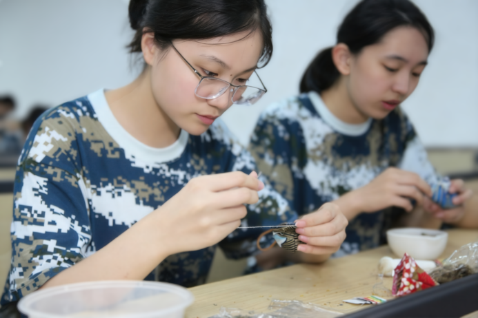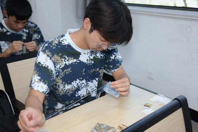 活动结束时,每位同学手中都握着自己独一无二的香囊,满满的成就感油然而生,小小香囊承载的不仅是动手能力与创造力的体现,更承载着军训期间的特殊记忆和战友情谊。通过本次连排活动,同学们不仅放松了身心,缓解了训练压力,更在劳动教育过程中培养了耐心细致的习惯,增强了团队凝聚力。