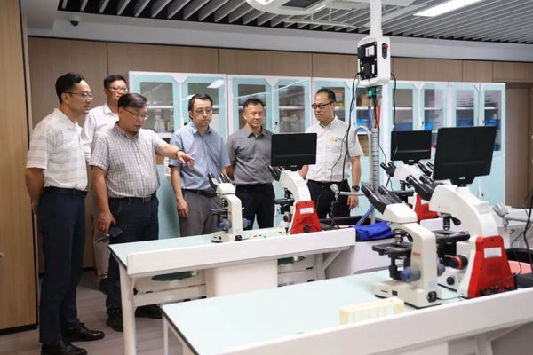 与会人员在李鹏校长的带领下参观了学校科学教育空间、化学生物实验室、地下运动场馆、创新劳技教室等服务学生综合发展的优质教育教学空间。