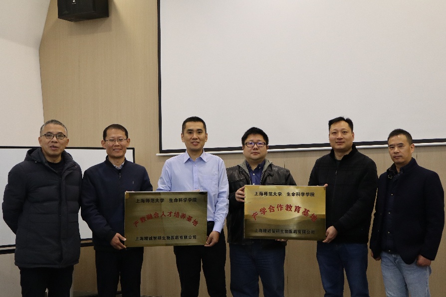 为进一步推动学科建设与产业发展深度融合,有效深化人才培养与科研创新的协同发力。11月28日,生命科学学院与上海精诚智研生物医药有限公司校企合作暨“产教融合人才培养基地”“产学合作教育基地”揭牌仪式在上海外高桥自贸壹号举行。学院副院长孟祥宗教授、生物医药系主任芦银华研究员、副系主任袁华研究员,精诚智研总经理许杰、精诚智研高级总监黄春健、精诚智研运营总监连耘出席揭牌仪式。