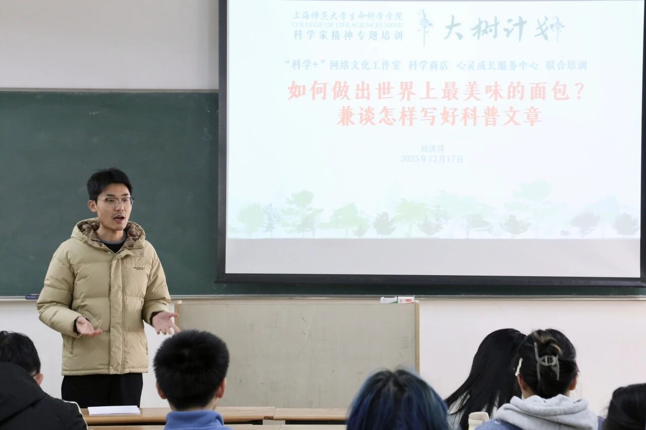 12月17日下午,生命科学学院聚焦提升以科学家精神铸魂育人实效,开展科普写作技能提升专题培训。本次培训联动学院“科学+”网络文化工作室、科学商店、心灵成长服务中心,搭建跨部门工作交流平台,旨在精准提升学生科普写作专业能力,为探索科学家精神创新传播路径筑牢基础。培训由学院思政专项辅导员刘洪洋老师主讲。